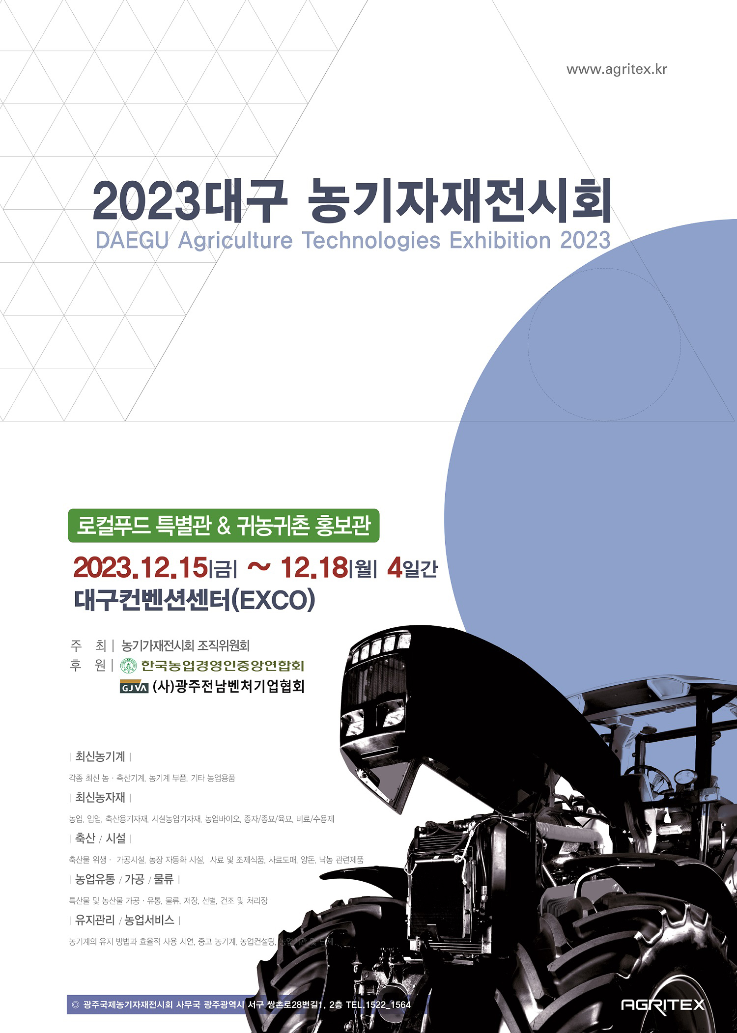 최신 트렌드, 농업의 생생한 모습을 한자리에!명 칭 · 국문 : 2023 대구농기자재전시회